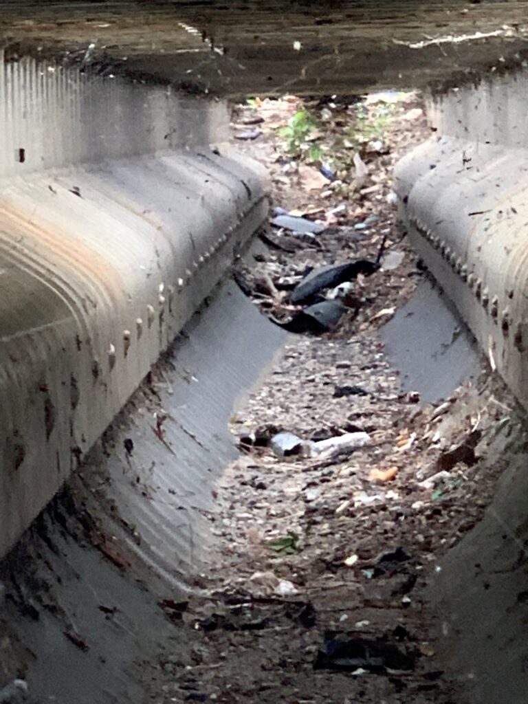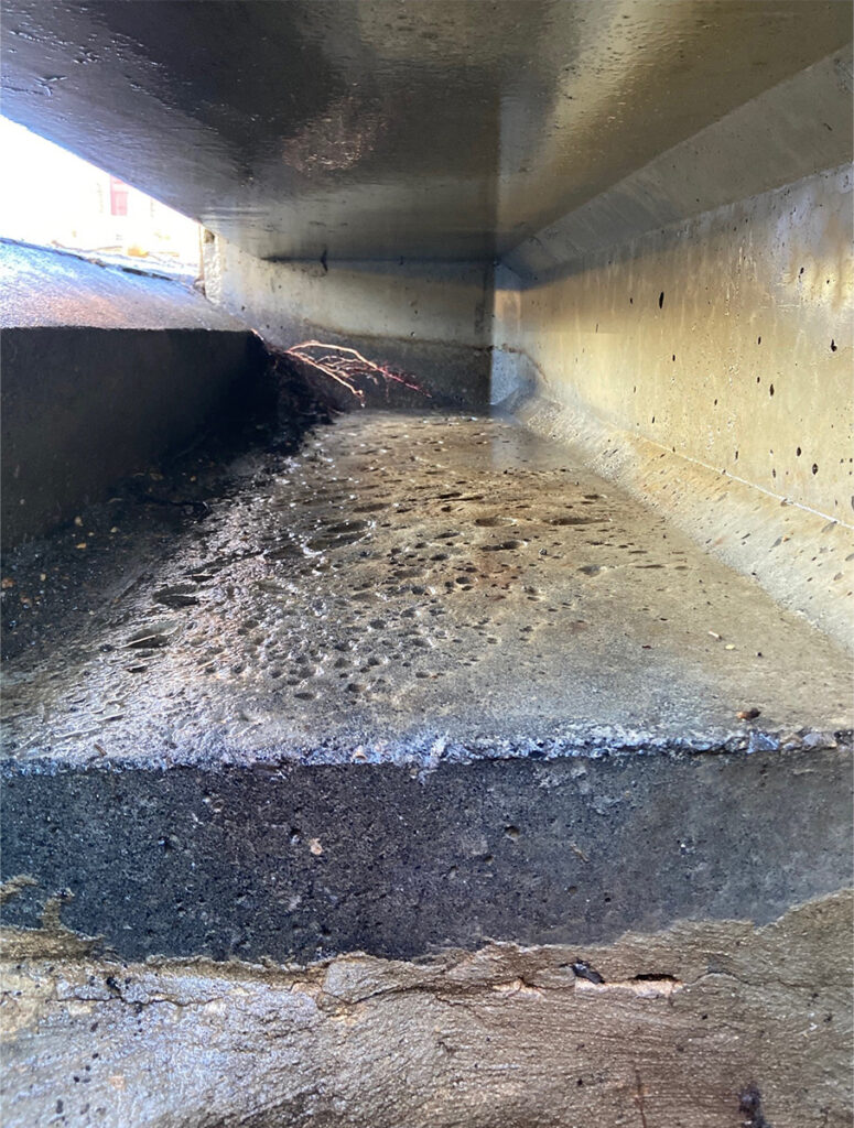 The rain troughs at this historic bridge had never been maintained or cleaned, causing substantial sediment/debris build up which could eventually cause puddling issues on the surface.